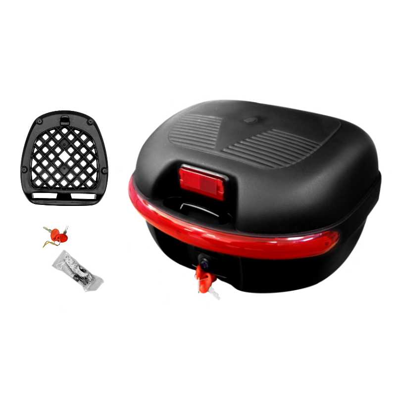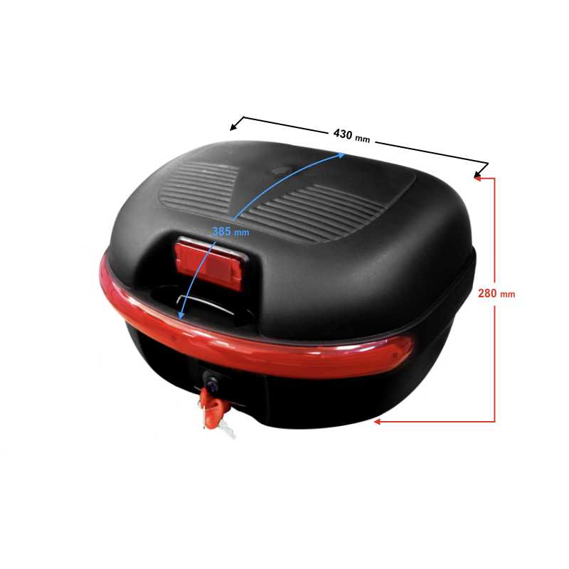 Typ - Kufer Rodzaj - Uniwersalny Pojemność - 30L Wymiary w cm - szer.430 x gł.385 x wys.280 mm Zabezpieczenie - zamek Kluczyk 2 sztuki