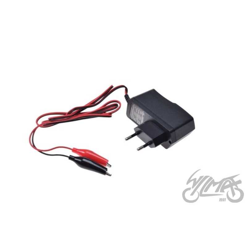 Ładowarka do akumulatorów ołowiowo-kwasowych od 2,5 AH do 20 AH Prąd wyjściowy : Napiecie ładowania : 6V, prąd stały Natężenie prądu znamionowe 1A Zakres natężenia prądu : 0A-1A Moc znamionowa 6W Prąd wejściowy : Zakres napięcia : 100V-240V, prąd zmienny Zakres częstotliwości : 47-63 Hz Sprawność : pow. 75% Natężenie prądu zmiennego : 0,31A przy 115V, 0,16A przy 230V