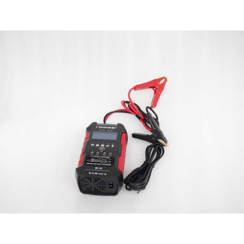 Ładowarka do akumulatorów KONNWEI Model RC-10 jest z SZYBKĄ ŁADOWARKA 10AMP: 12V 10-Amp i 24V 5-Amp 7-stopniowa szybka ładowarka akumulatorów, prędkość ładowania jest znacznie większa niż w przypadku automatycznych ładowarek 8-Amp lub 5-Amp. Ładuj lub napraw wszystkie 12-woltowe i 24-woltowe akumulatory kwasowo-ołowiowe samochodowe, morskie i o głębokim cyklu, w tym AGM, GEL, SLA, zalane w samochodach, ciężarówkach, SUV-ach, motocyklach, kosiarkach, łodziach morskich itp.